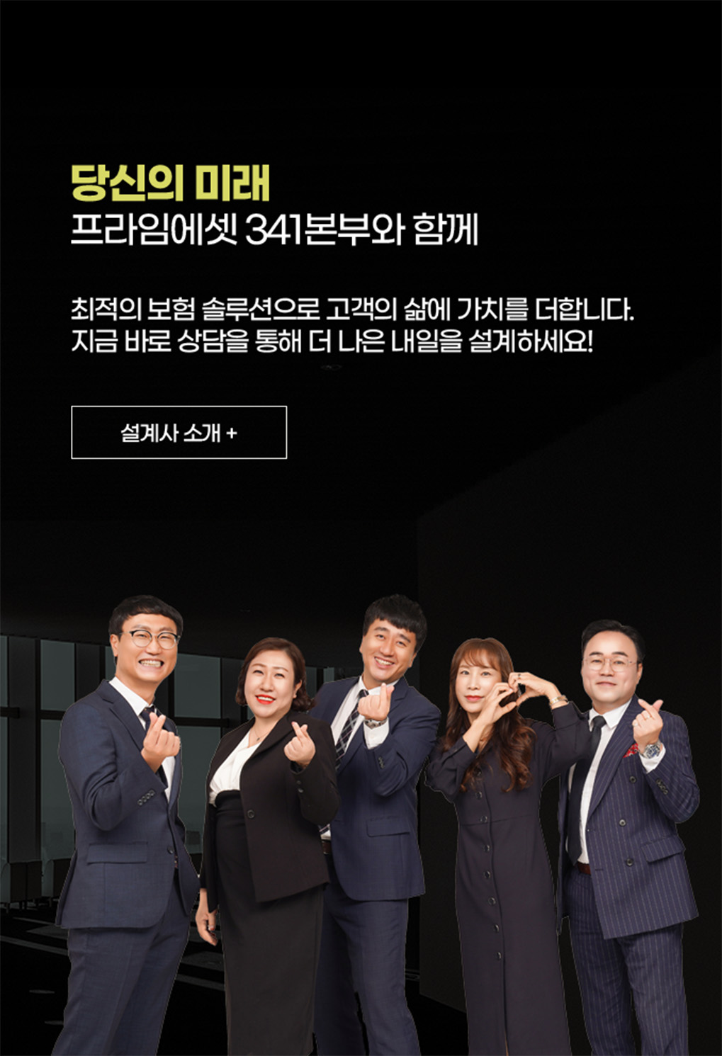 저희 341본부는 고객님의 안전과 미래를 지키는 든든한 동반자로서, 단순한 보험 설계의 범위를 넘어 고객 한 분 한 분의 삶을 이해하고 더 나은 미래를 만들어가는 여정을 함께하고자 합니다.